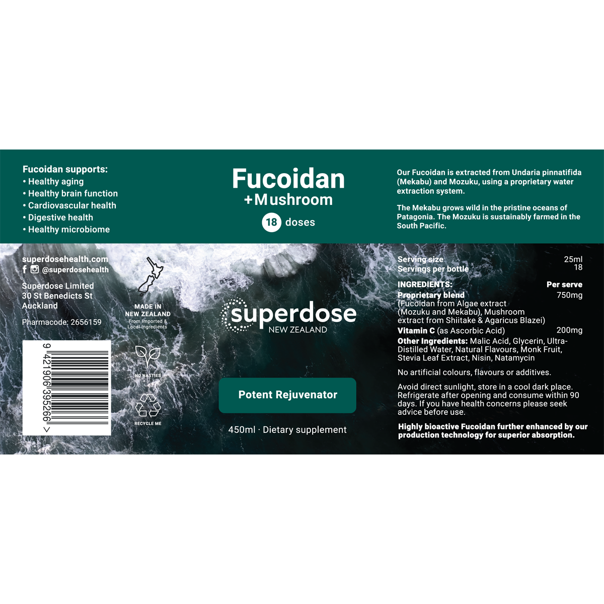 Superdose Fucoidan + Mushroom 750mg, 75ml & 450ml