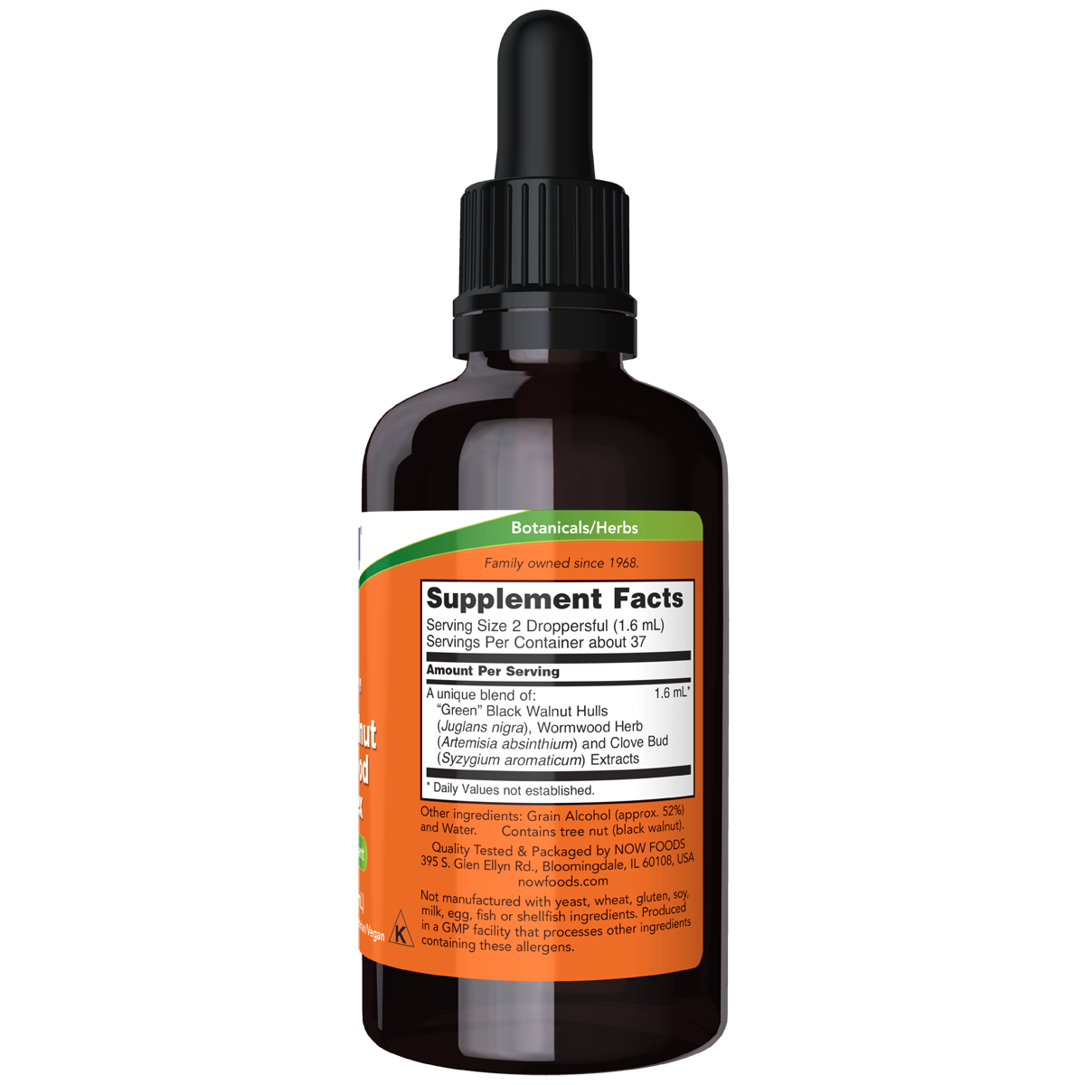 “Green” Black Walnut Wormwood Complex is an herbal formulation that combines three traditional herbal extracts in one convenient liquid supplement. This product is manufactured with extracts of unripe (green) black walnut hulls (Juglans nigra), wormwood (Artemisia absinthium) and clove buds (Syzgium aromaticum).