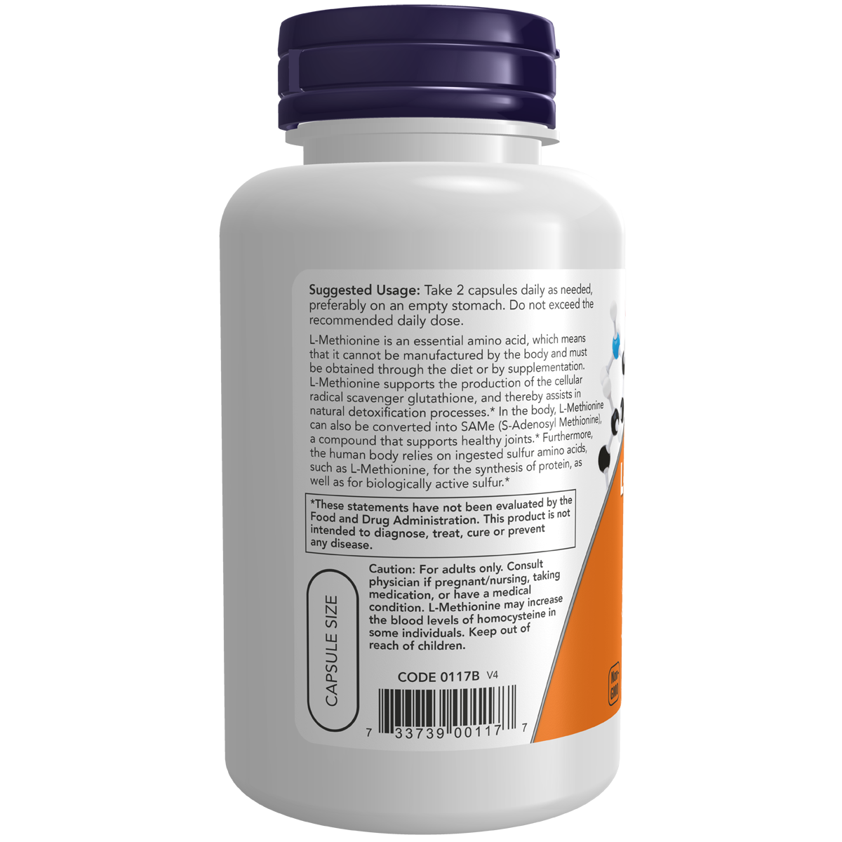 NOW® L-Methionine is the natural L-form of this amino acid. The synthetic DL-form is never used in any of our amino acid products.