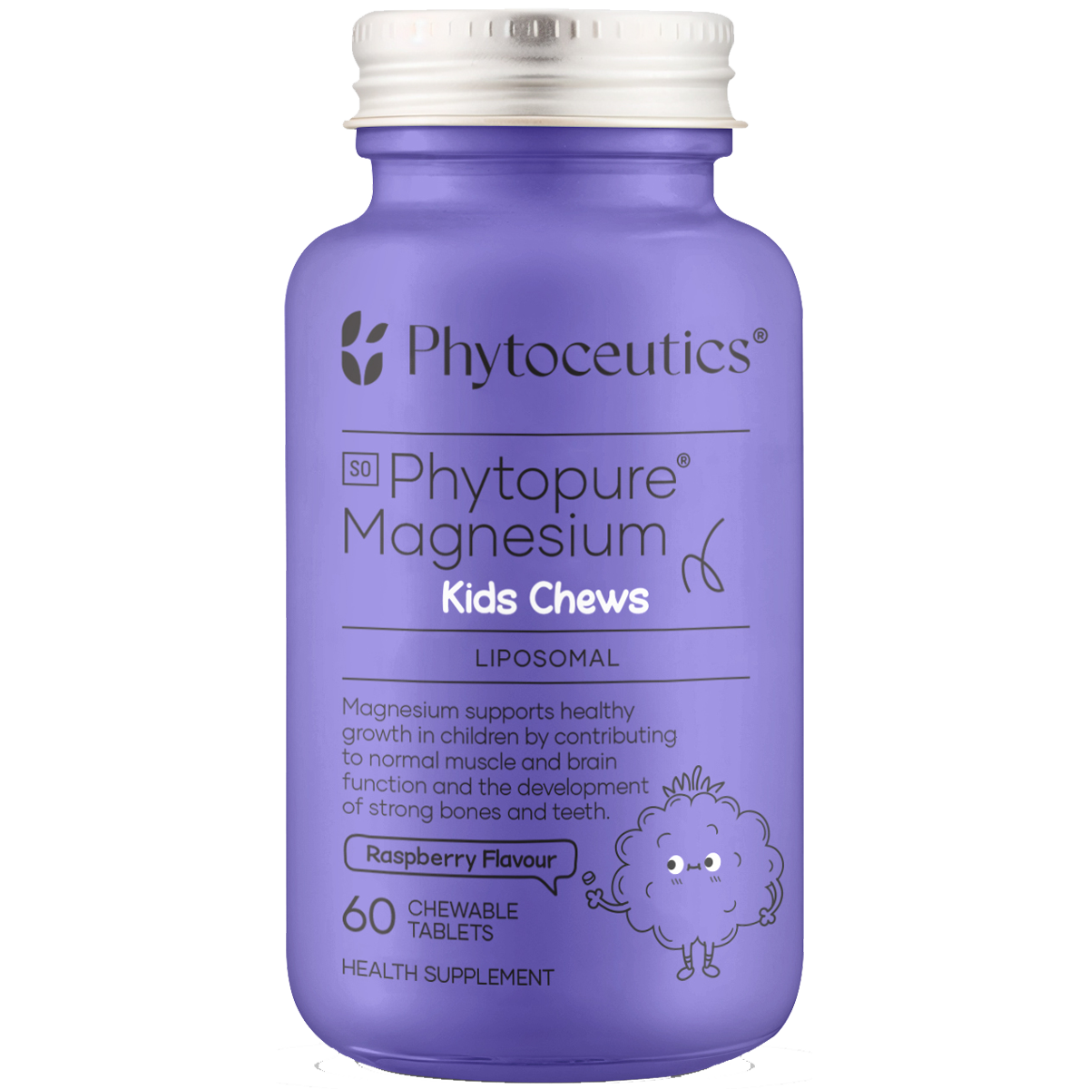 Phytopure® Magnesium Kids Chews is a daily health supplement designed to support healthy growth and development in children aged 1 year and older. Magnesium contributes to normal muscle and nerve function, helps regulate energy production, and plays a key role in building strong bones and teeth during early childhood and adolescence.