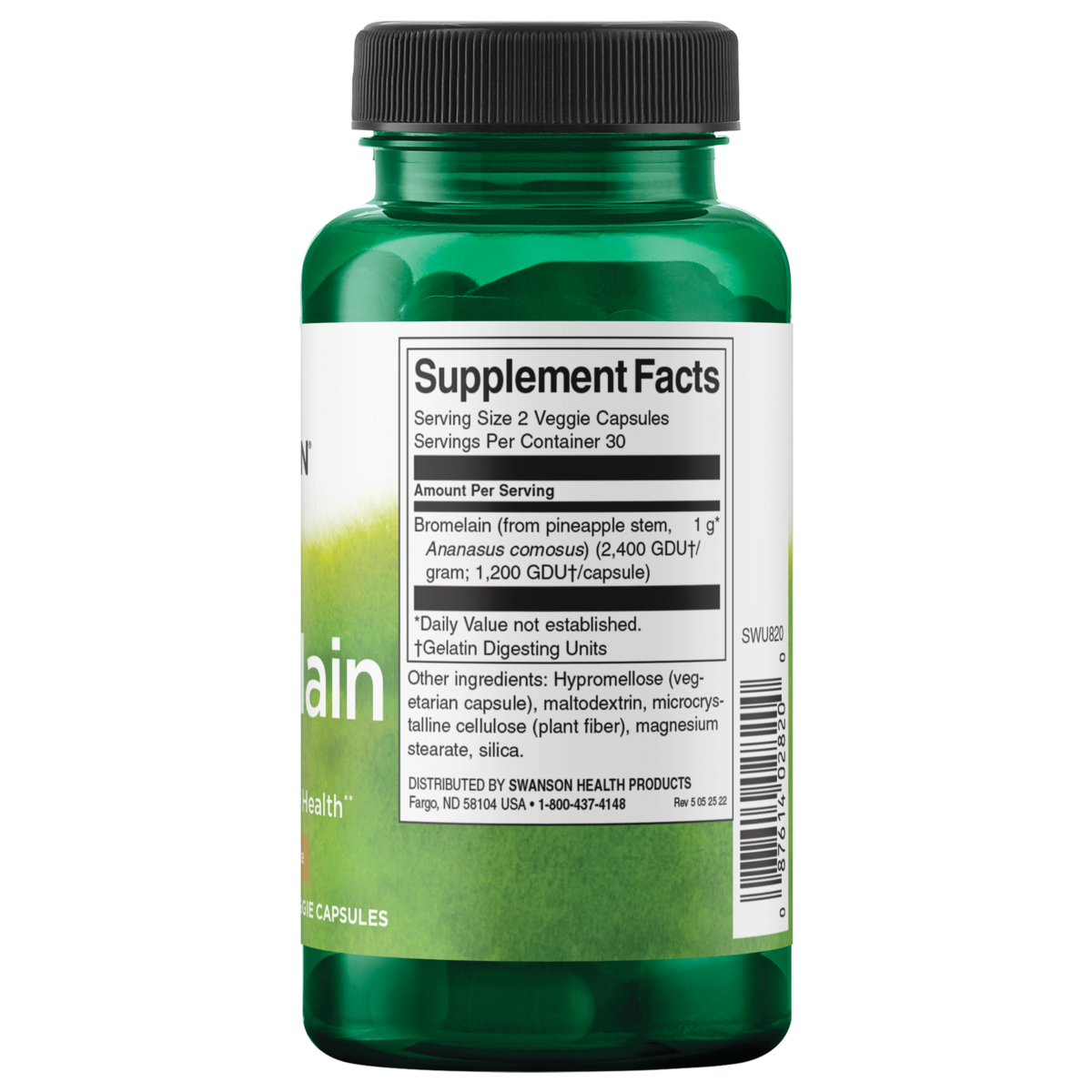 Bromelain (from pineapple stem, Ananasus comosus) 2,400 GDU/Gram; 1,200 GDU*/capsule) 1g