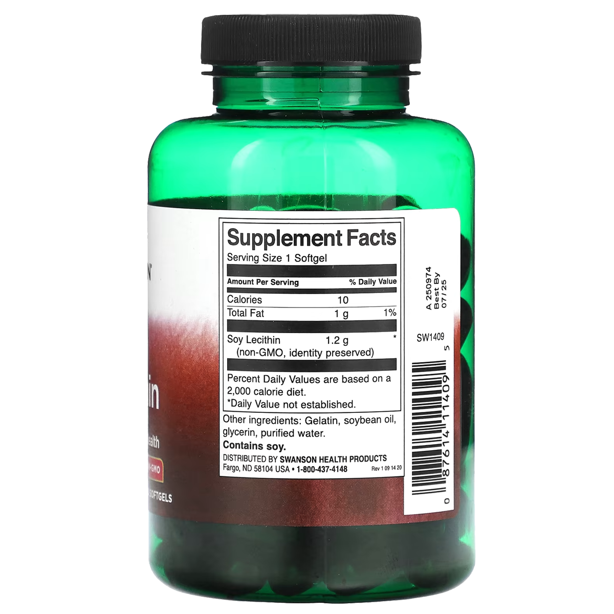 For healthy cardiovascular maintenance and cholesterol levels already within the normal range, try Soy Lecithin from Swanson Health Products! This unique supplement is an outstanding fat emulsifier that features phosphatidylserine to support cognitive health as well as phosphatidylcholine to promote healthy liver function. Each high-absorption softgel delivers 1,200 mg of soy lecithin.