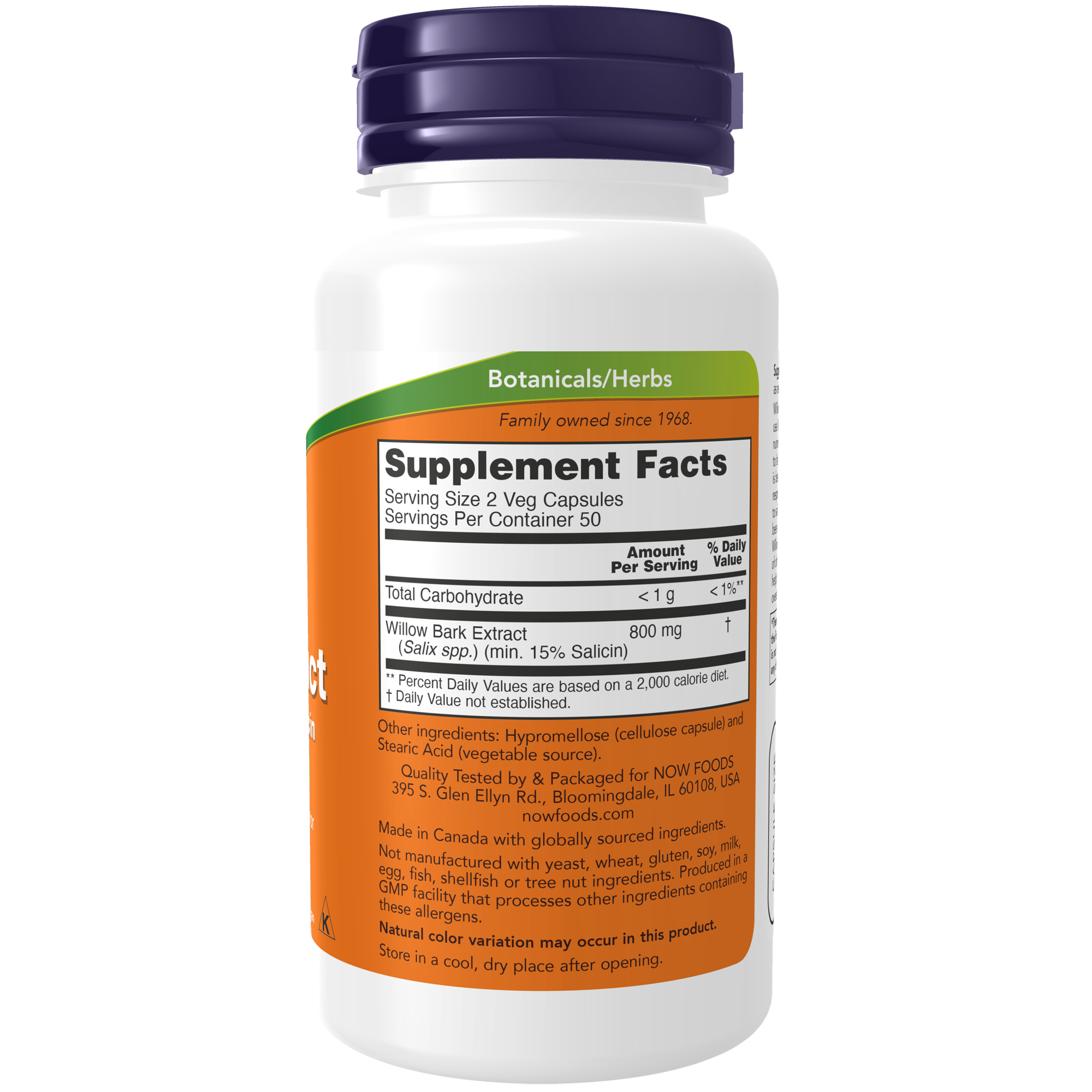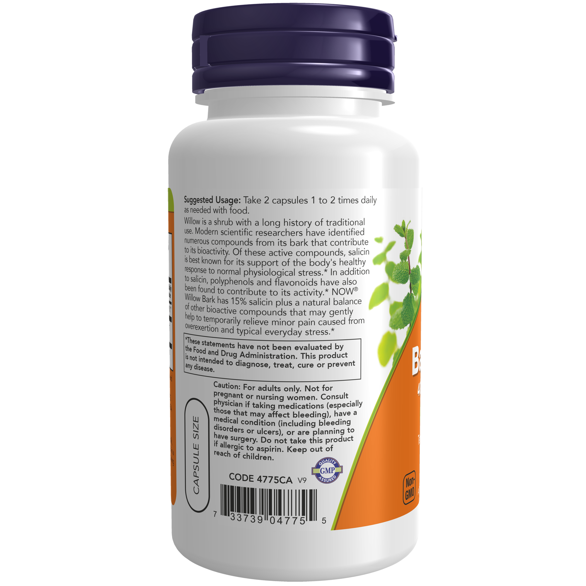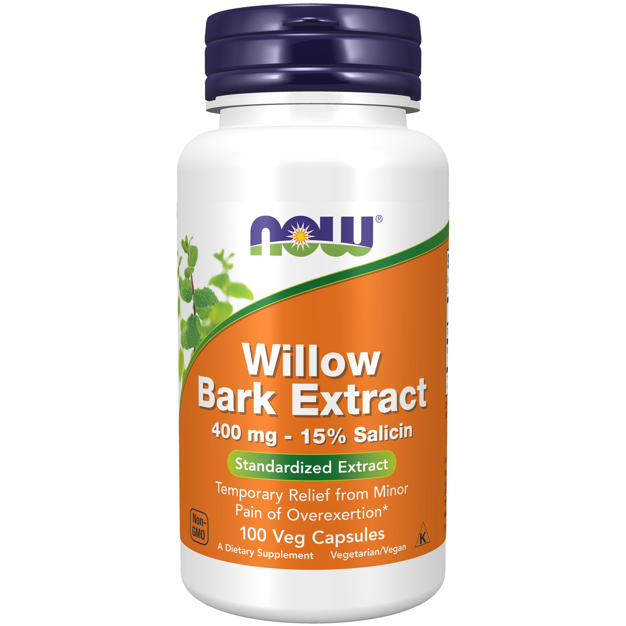 Willow is a shrub with a long history of traditional use. Modern scientific researchers have identified numerous compounds from its bark that contribute to its bioactivity. Of these active compounds, salicin is best known for its support of the body’s healthy response to normal physiological stress. In addition to salicin, polyphenols and flavonoids have also been found to contribute to its activity. NOW® Willow Bark has 15% salicin plus a natural balance of other bioactive compounds that may gently help to temporarily relieve minor pain caused from overexertion and typical everyday stress.